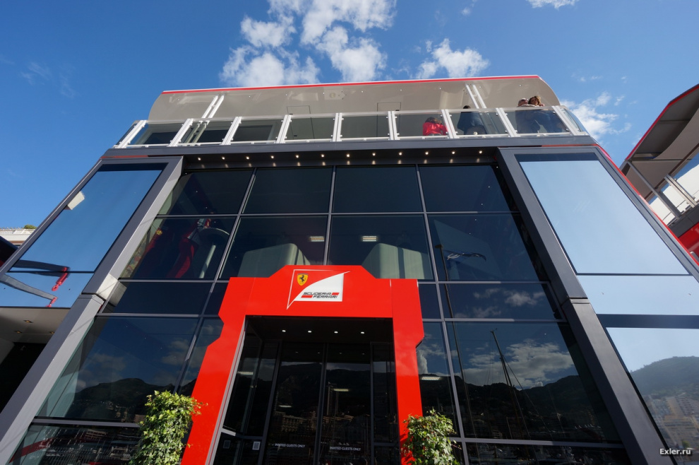 Заходим на территорию паддока. (Насколько я помню, паддок - это открытая площадка с навесом рядом с обычной конюшней, а в "Формуле" паддоком называют всю закрытую территорию, на которой находятся рабочие зоны команд, участвующих в "Формуле".)