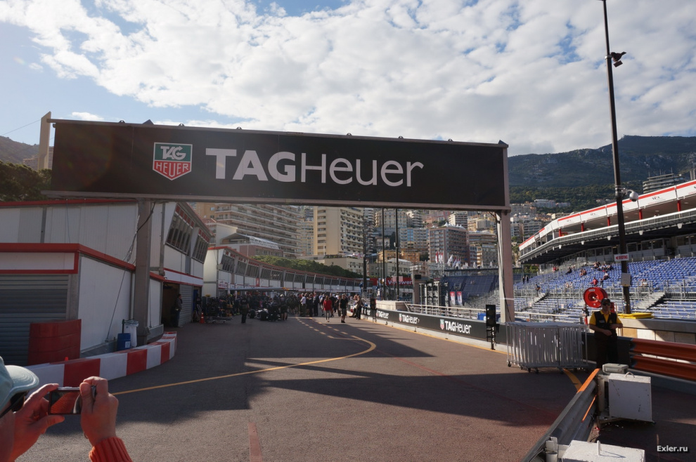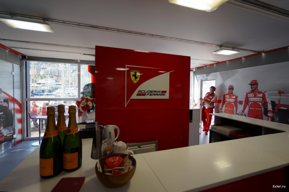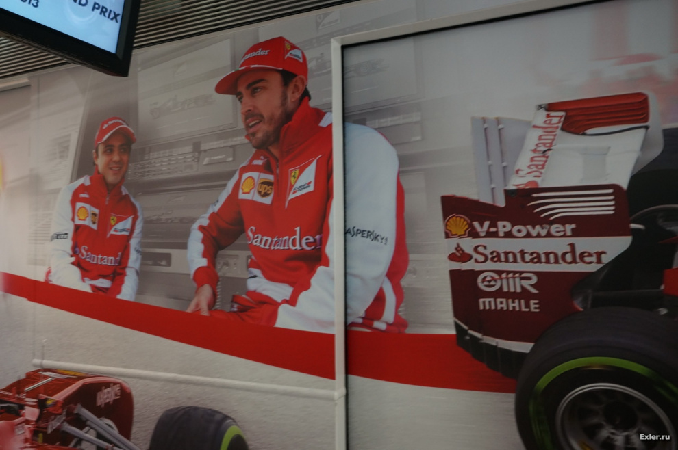 Презентация уже закончилась, за нами приходит PR-менеджер команды Ferrari, который должен отвести нас в святая святых. Проходим под небольшим участком трибун, стоящем спиной к яхтам, выходим прямо на трассу к большим трибунам.