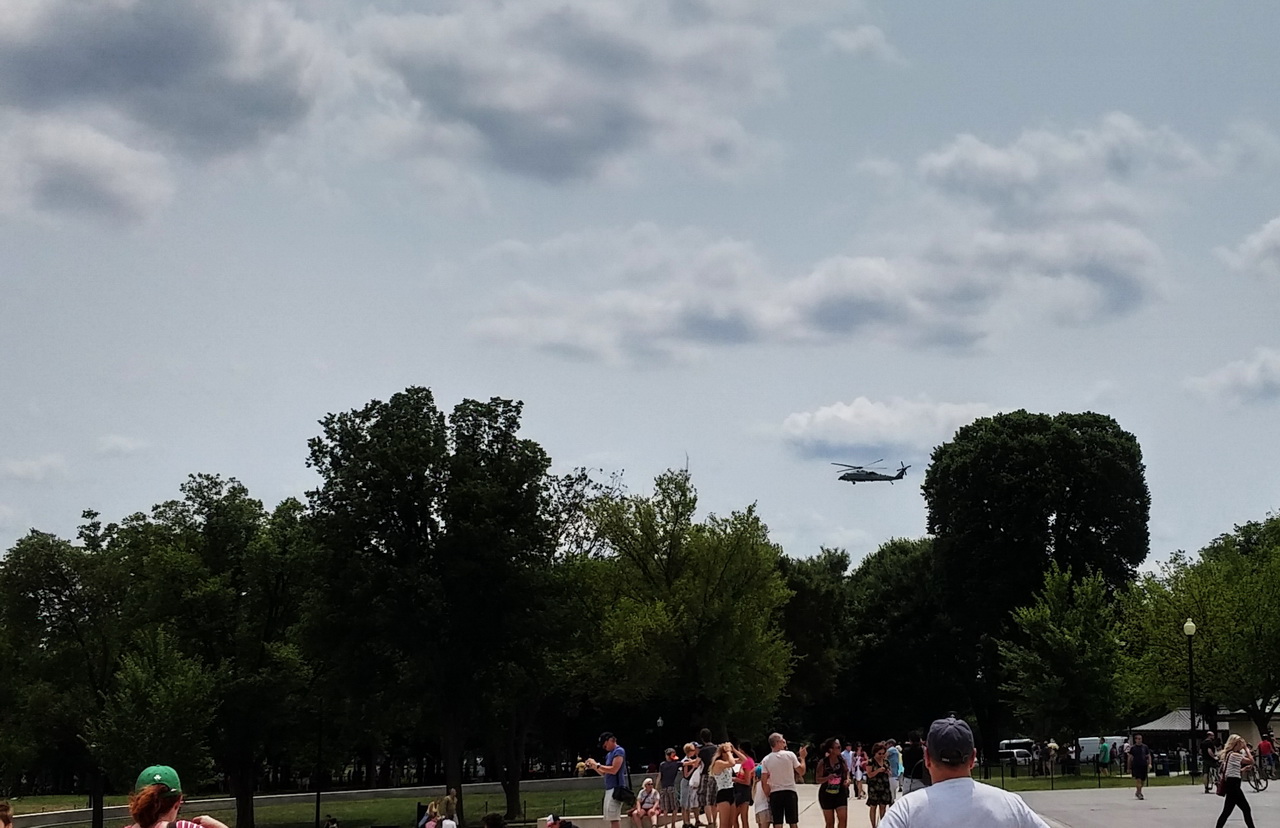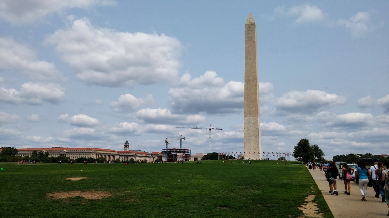Приближаемся к монументу Вашингтона. По цвету камней хорошо видно, когда его строительство останавливалось, а потом снова продолжалось.
