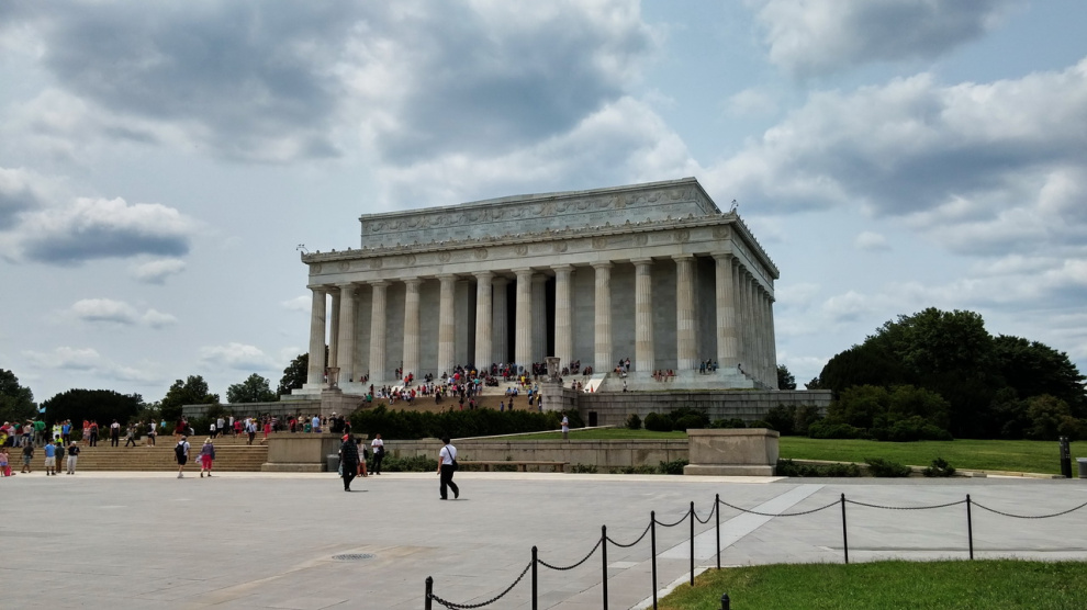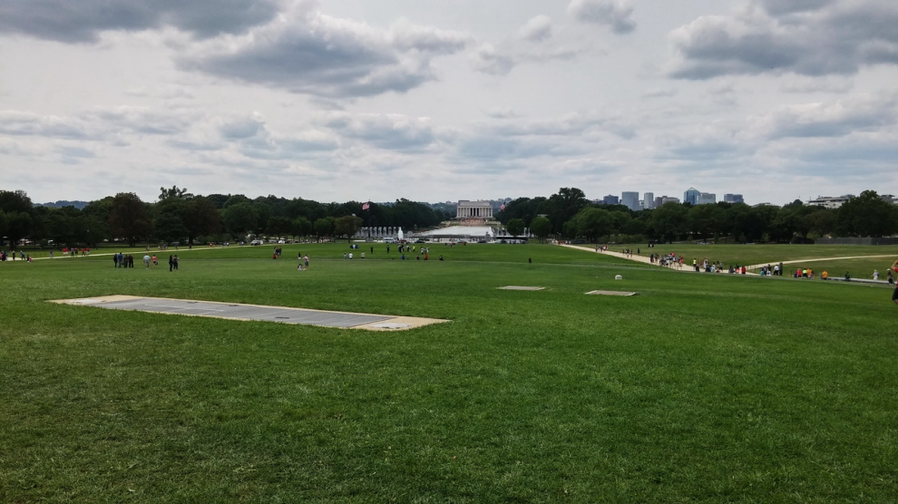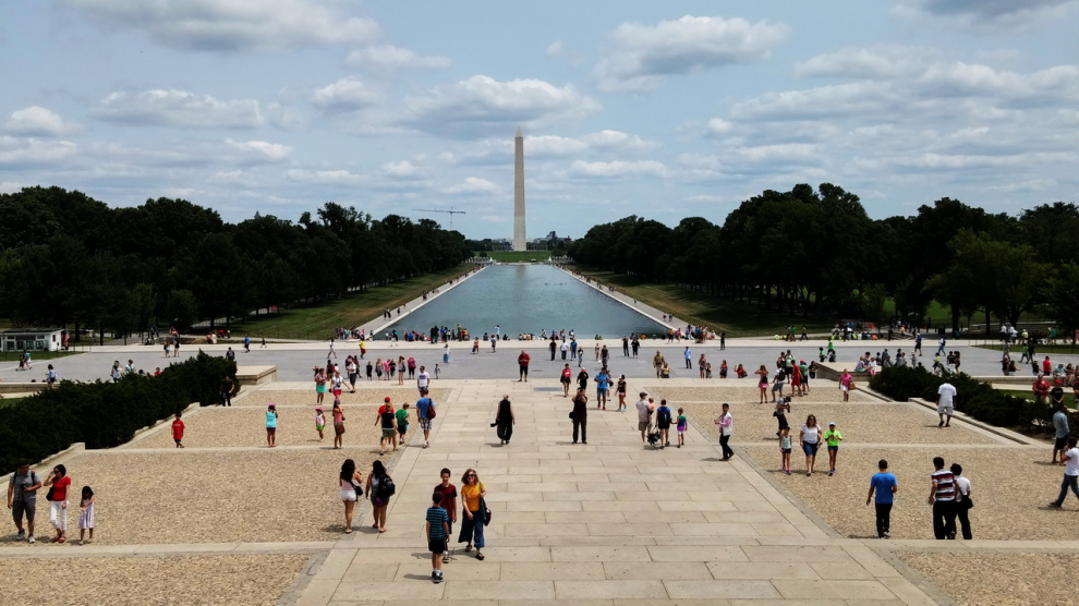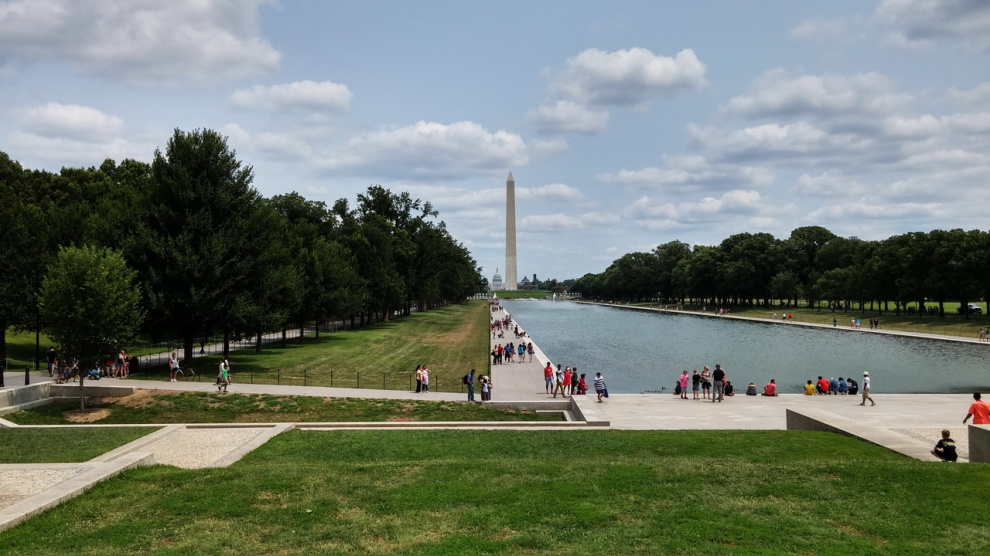 Вид от мемориала Линкольна на монумент Вашингтона.