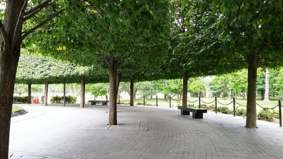Кроны деревьев в верхней части мемориала очень интересно подстрижены