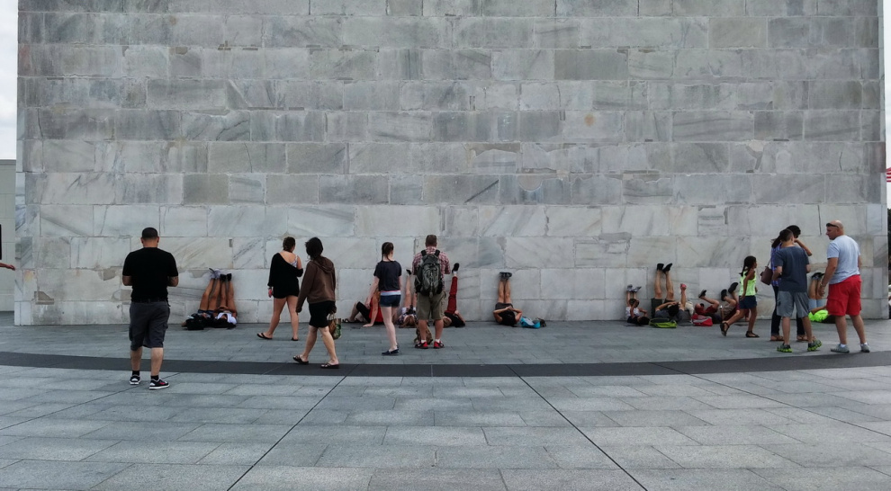 Монумент Вашингтона. Почти все туристы пытаются повторить кадр, который до них делали миллионы других туристов. Интересно, кто первый это придумал?