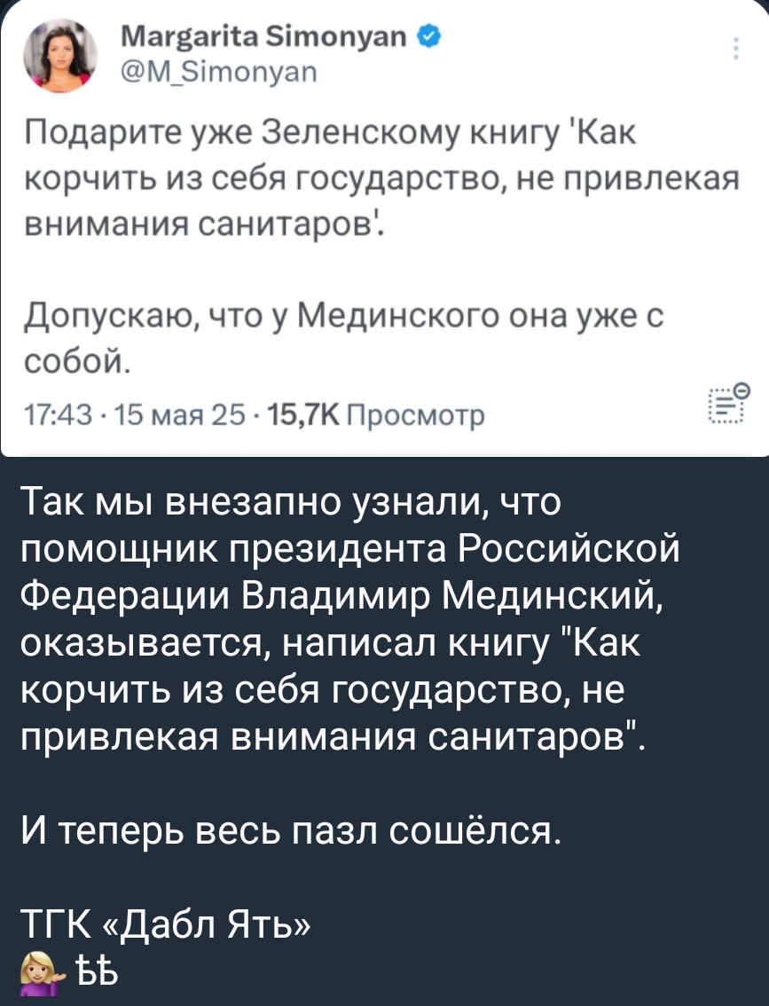 P.S. Подумалось, что по подгоранию одного места в отношении Украины и персонально Зеленского Юля, пожалуй, уже обошла и Машу Захарову, и Маргариту Симоньян.