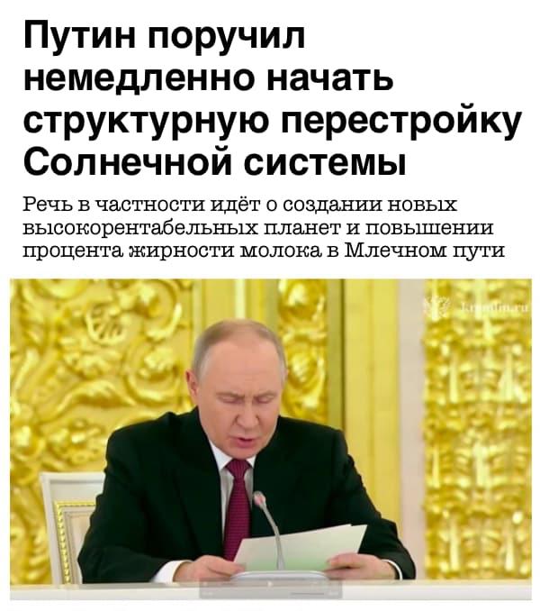 Всю эту бредятину он нес на заседании Совета по стратегическому развитию и национальным проектам. И заметьте, что в зале никто не заржал, все удержались. Профи.