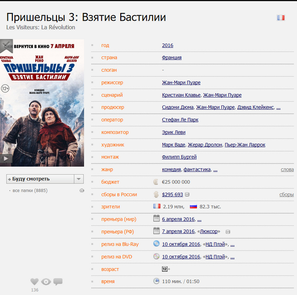 И вот теперь хочется получить ответ на вопрос, на буя французы в 2016 году выпускают фильм "Пришельцы 3" все с теми же сильно потрепанными Рено и Клавье?!! Какой был шанс, что это сработает? Никакого!