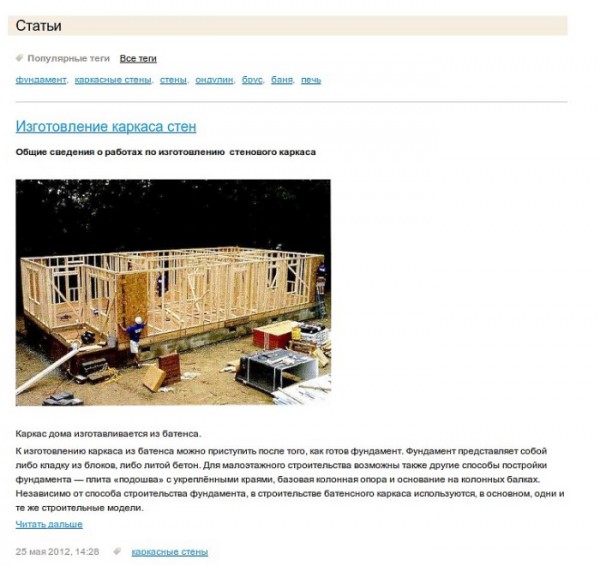 Увидела свет и рубрика "Статьи". Данный раздел является по сути полноценным блогом. А это означает, что в нем можно размещать заметки и статьи на актуальную для вашего ресурса тематику. С помощью блога можно также увеличить востребованность вашего сайта в поисковых системах (SEO) и, конечно, с помощью данной рубрики вы сможете эффективно коммуницировать с посетителями вашего сайта. В частности, получать актуальные комментарии к своим статьям.