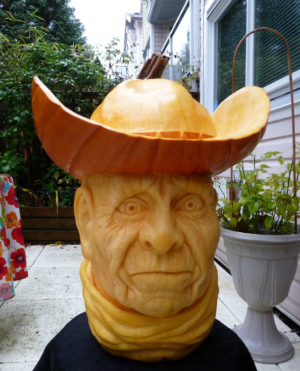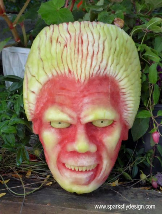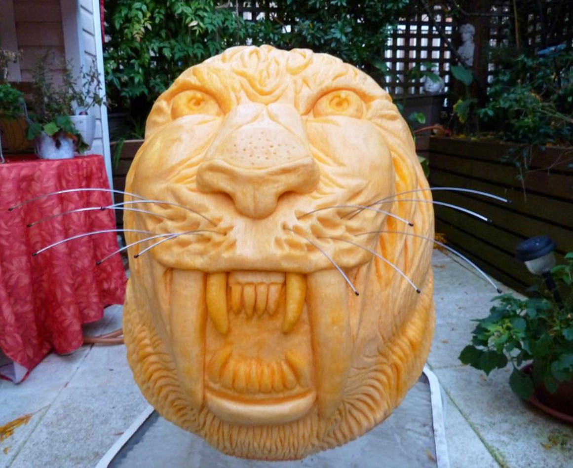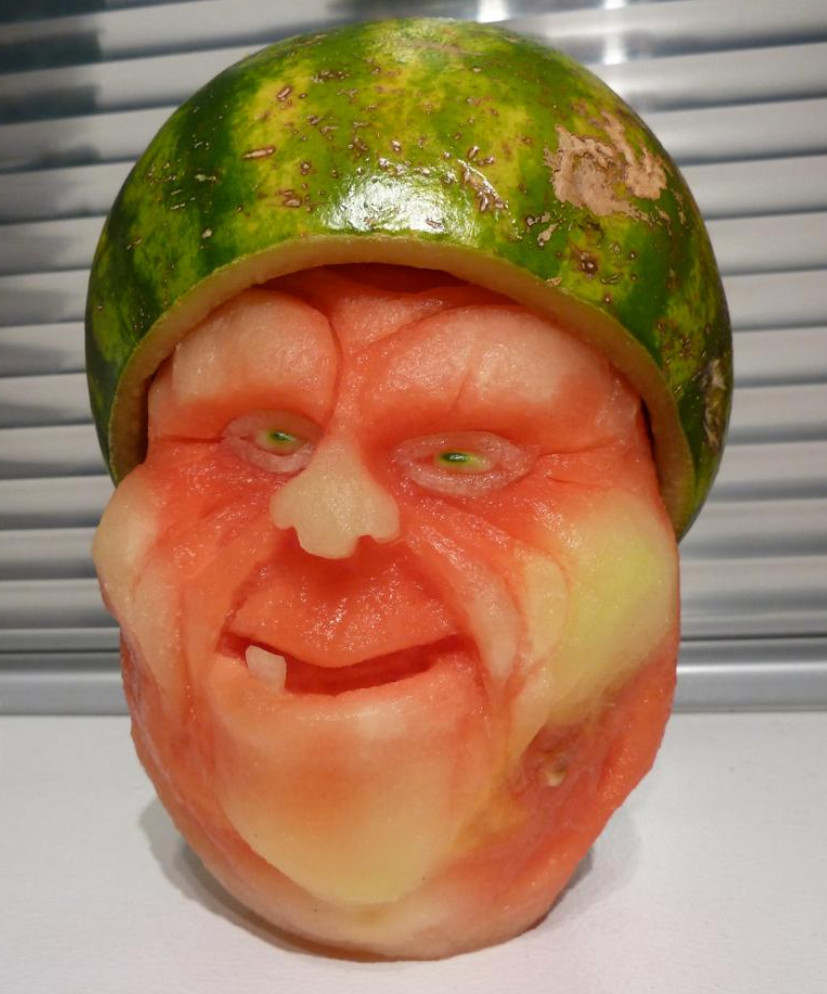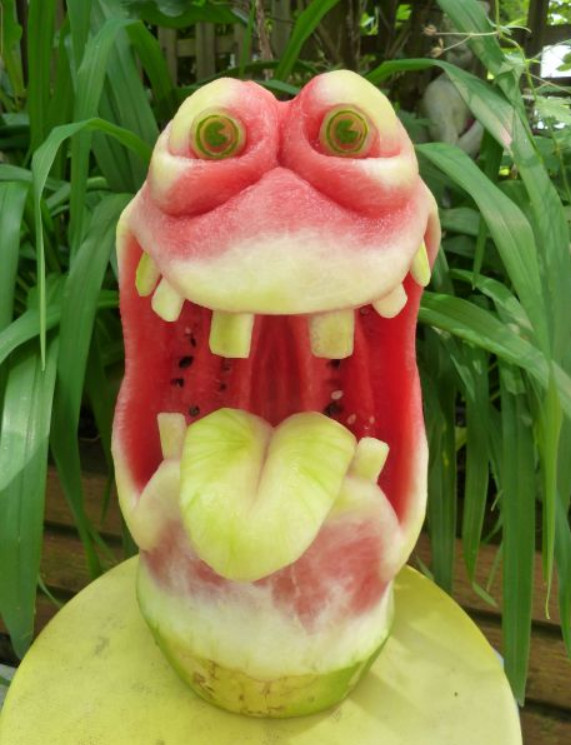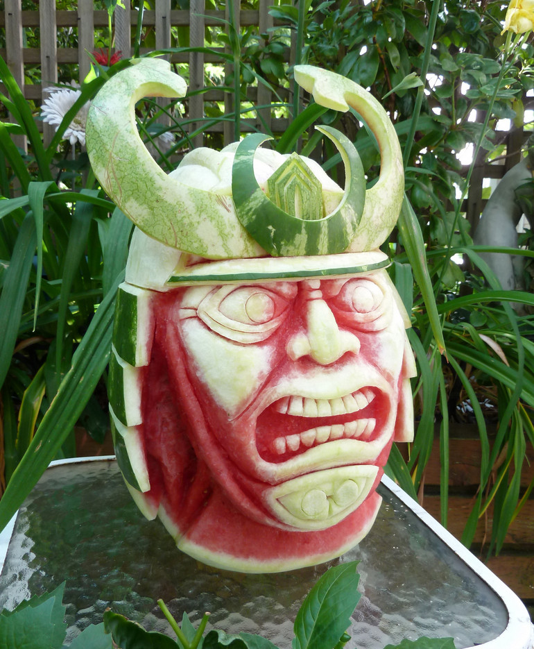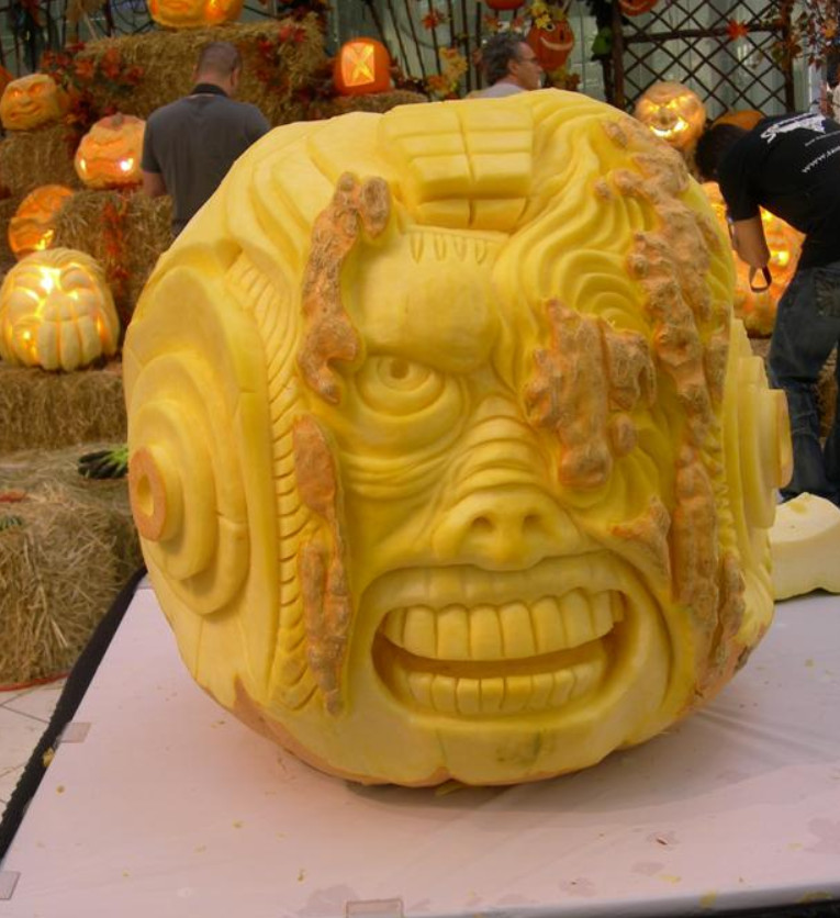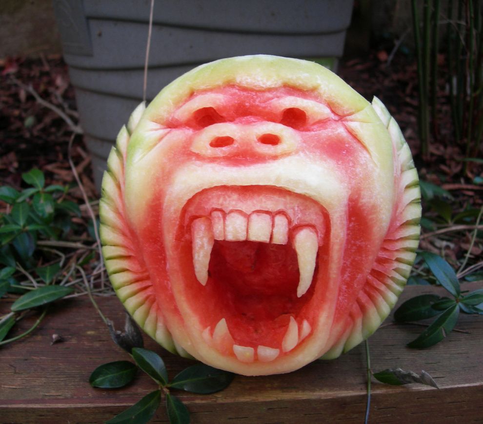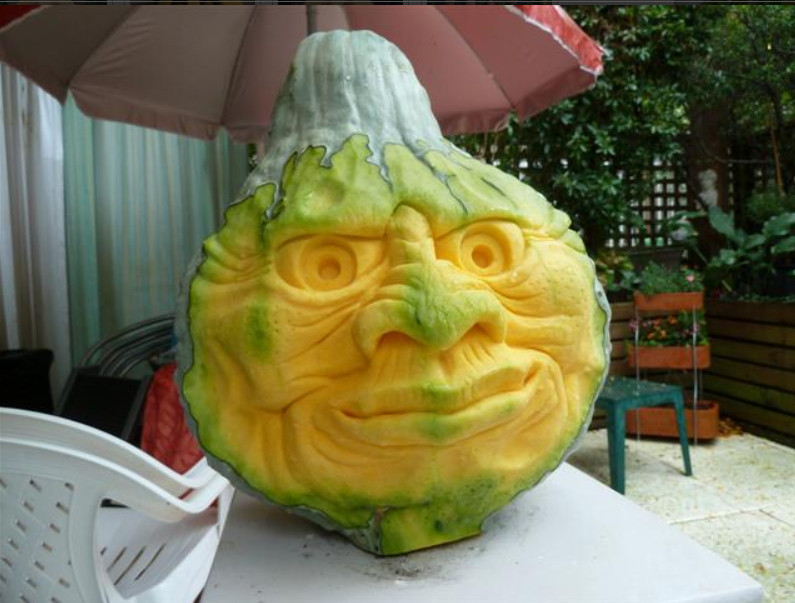 Живет в Канаде человек по имени Клайв Купер - вот сайт его студии. Клайв с помощниками делает совершенно невероятные фигурки из тыкв и арбузов. Вот галерея тыкв, вот галерея арбузов.
