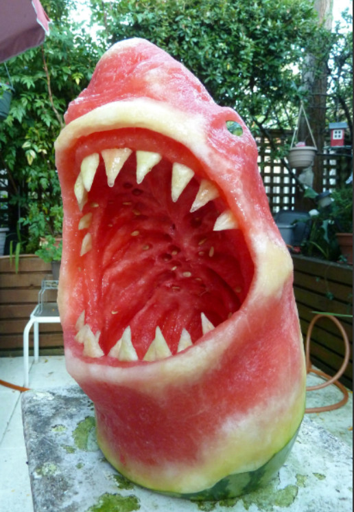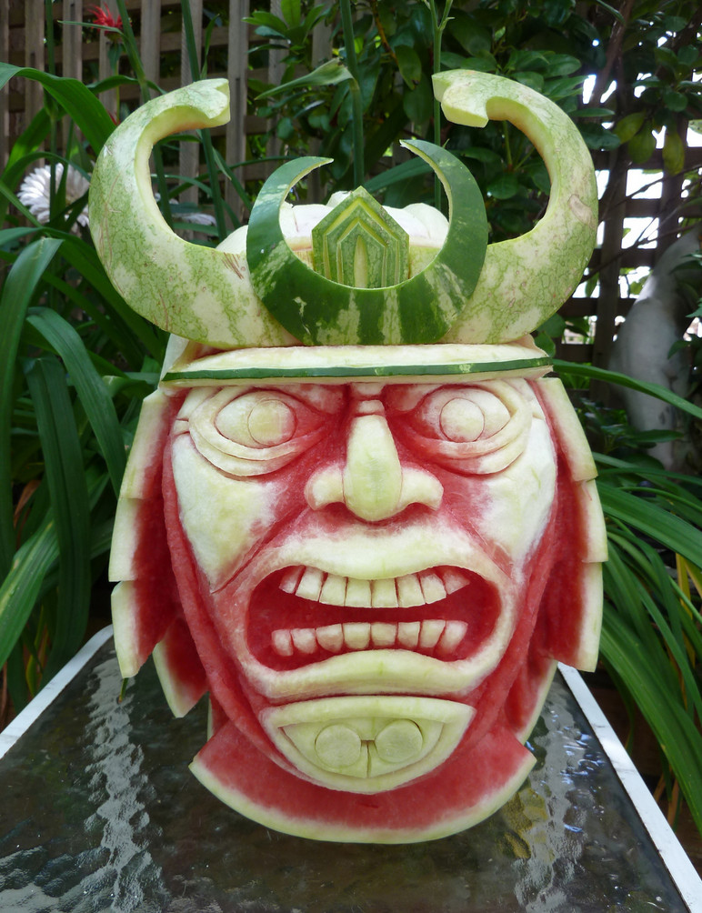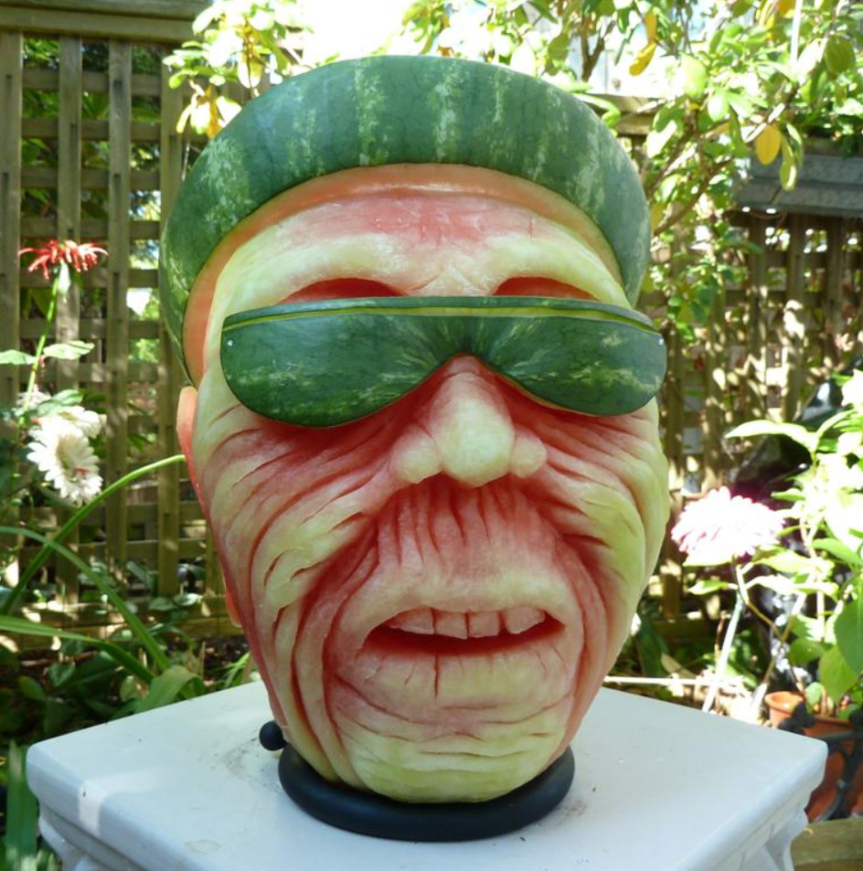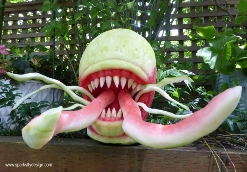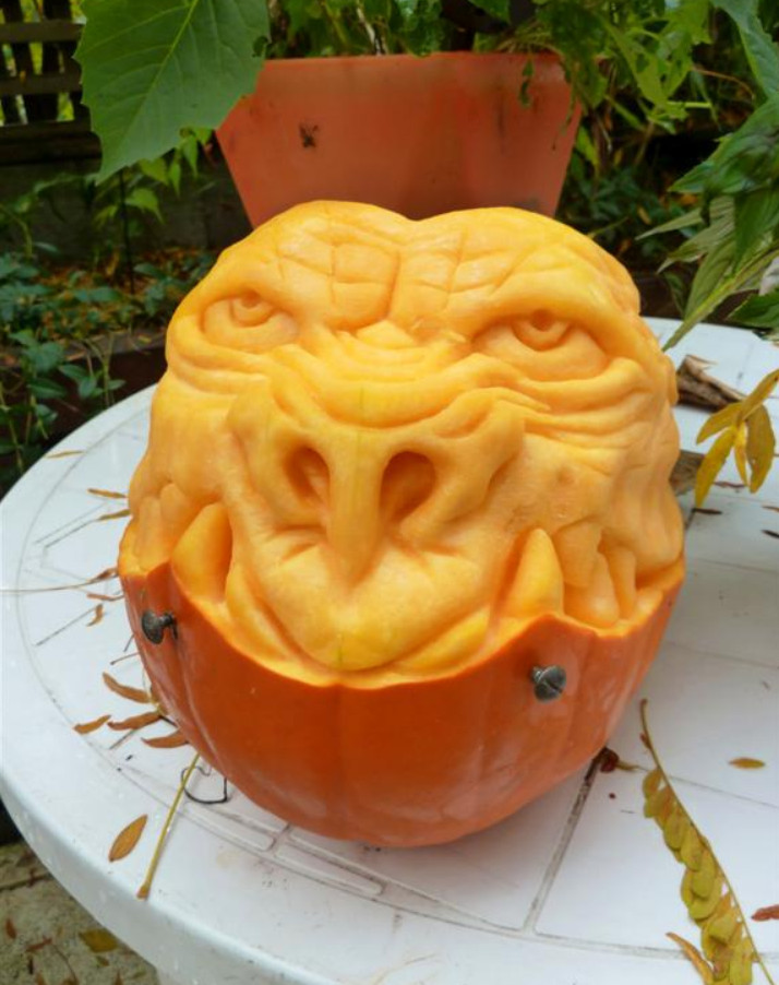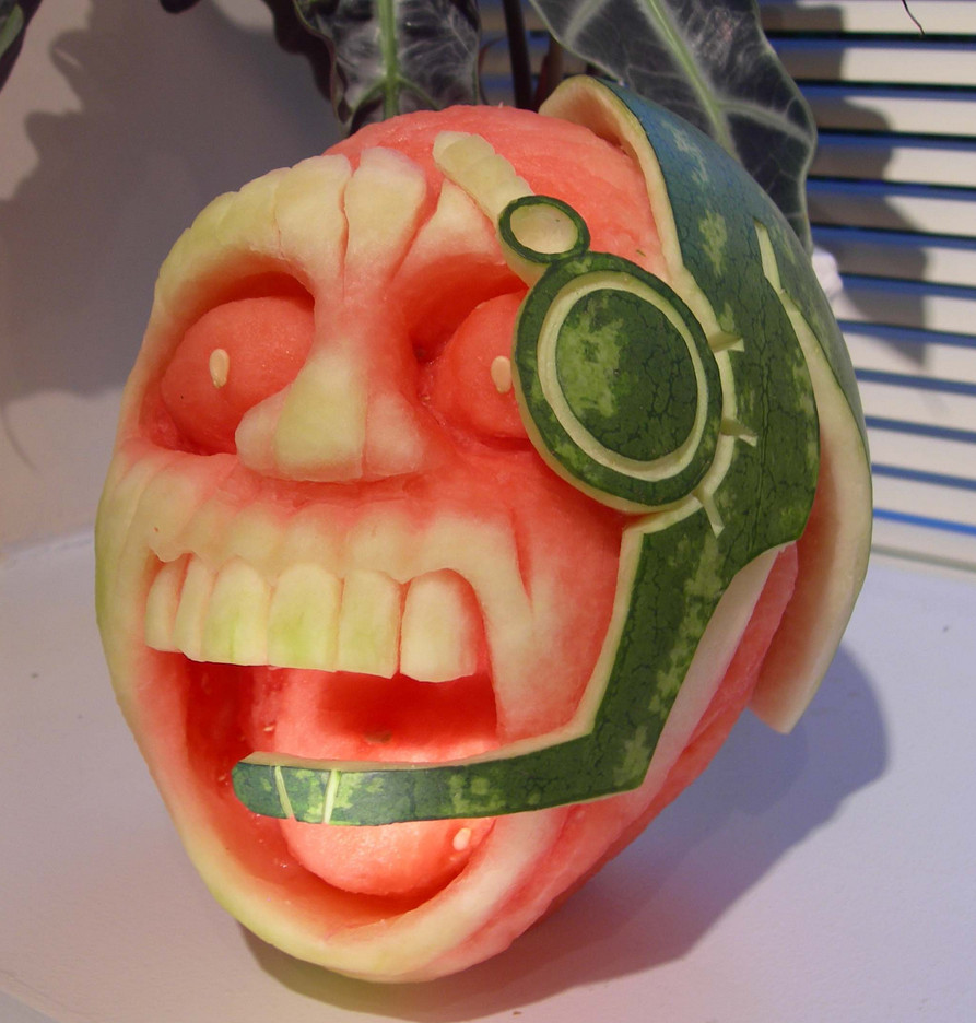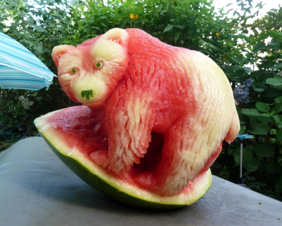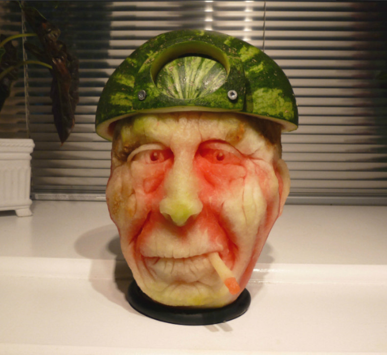 Живет в Канаде человек по имени Клайв Купер - вот сайт его студии. Клайв с помощниками делает совершенно невероятные фигурки из тыкв и арбузов. Вот галерея тыкв, вот галерея арбузов.