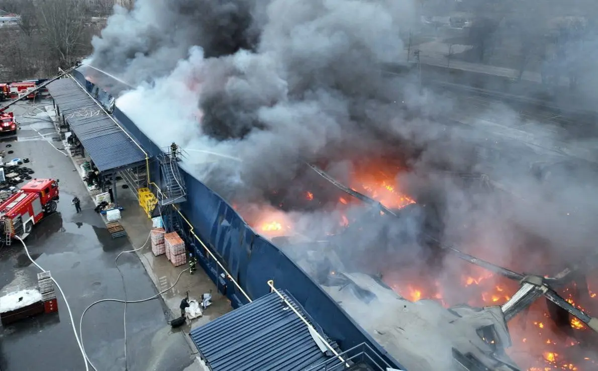 Спасатели работают на месте разрушенного российскими ракетами торгового центра в Никополе, Украина, 6 марта 2024 года