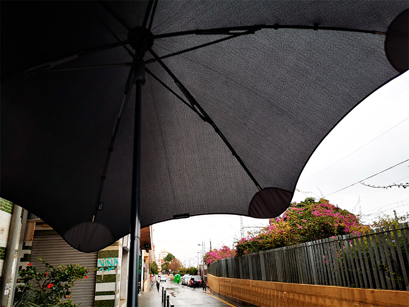 Наконец-то удалось провести боевое тестирование не выворачиваемого ветром зонта Blunt BLUNTXLSCH. Я об этом зонте прочитал у Демьяна Кудрявцева в его FB, поискал на "Амазоне", нашел там кучу моделей и зачем-то купил самый крутой вариант. Очень актуальная покупка для Испании, где дождь идет обычно пять дней в году. Ну и в результате он у меня почти полгода пролежал просто так: даже когда и был дождь, то без сильного ветра, так что протестировать зонт все равно не удавалось.