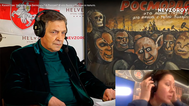 Большую часть передачи, разумеется, говорили о Казахстане (передача, напомню, была в среду, но ситуация с того момента кардинально не изменилась, кроме ввода российских и прочих "миротворцев", которые будут "защищать казахский народ от террористов". Братская помощь, так сказать).
