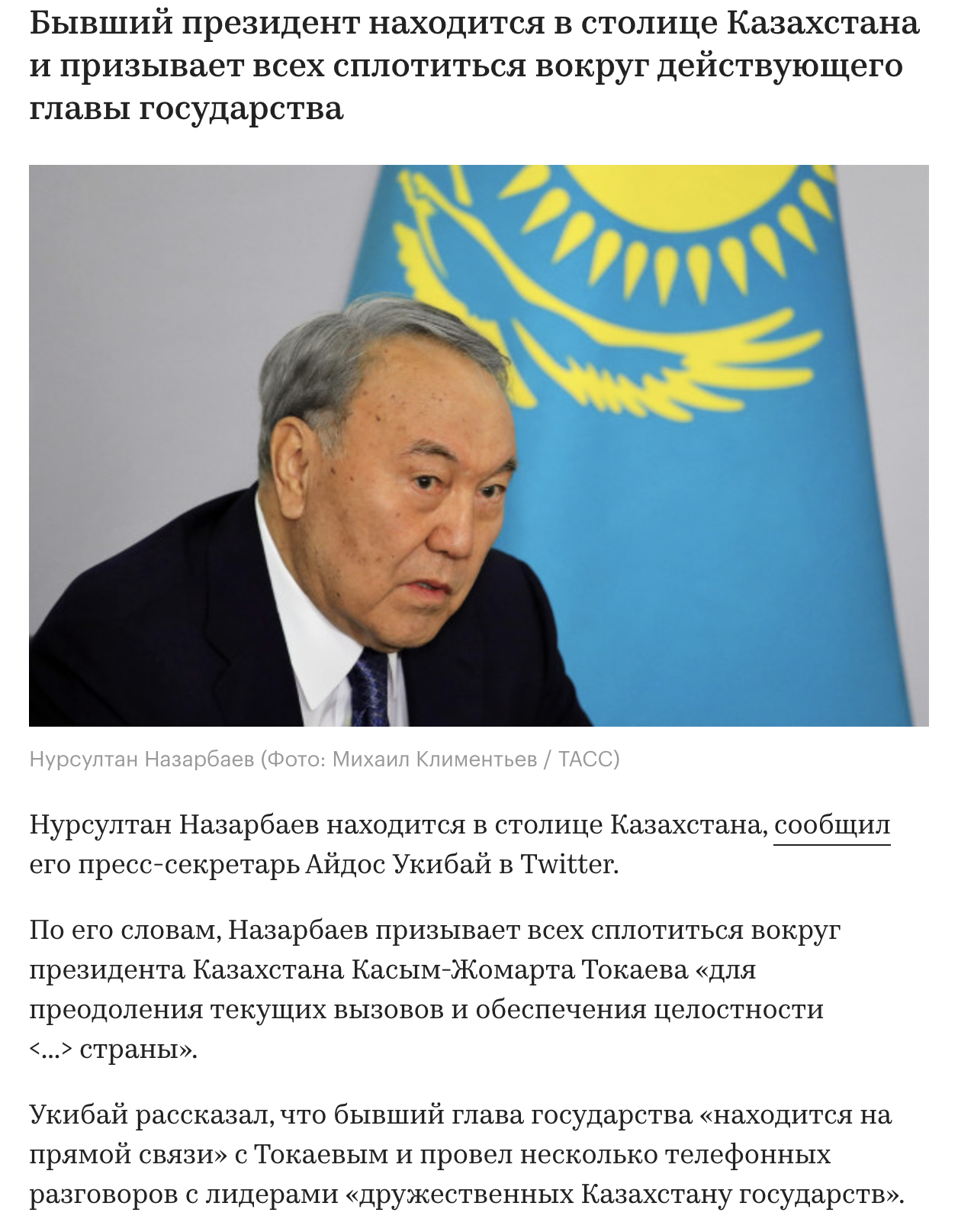 Я не смотрел ОФИЦИАЛЬНОЕ ЗАЯВЛЕНИЕ Токаева, как и вообще ТВ. Я смотрю Твиттер, там Токаев весьма активно постит, какой источник есть - такой и упомянул.