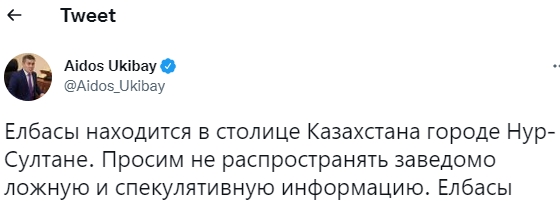 Помните большой твит Токаева про 20 000 террористов, говорящих на неказахских языках, насиловавших женщин? Там дальше, "мы не должны вести с ними переговоры, мы должны их убивать". Он радикально исправлен, по сути даже - удален. То ли террористов было не 20 000, то ли говорили они все же на казахском, то ли не насиловали, но короче в Твиттере о них осталось только скупая строчка про "вооруженный акт агрессии, подготовленный и координируемый иноагентами и террористами, которых тренировали за пределами страны".