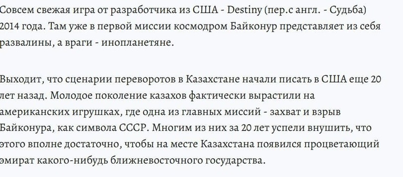 Война против мирных граждан никак не может быть доказательством того, что это делают иноагенты, не говорящие по казахски, которых тренировали за пределами страны. Кстати, одного иностранного "террориста" уже поймали, вон сообщение выше. И он даже во всем признался! Наверное, вы видели это по ТВ, как и ОФИЦИАЛЬНОЕ ЗАЯВЛЕНИЕ Токаева? Поверили этому доказательству?