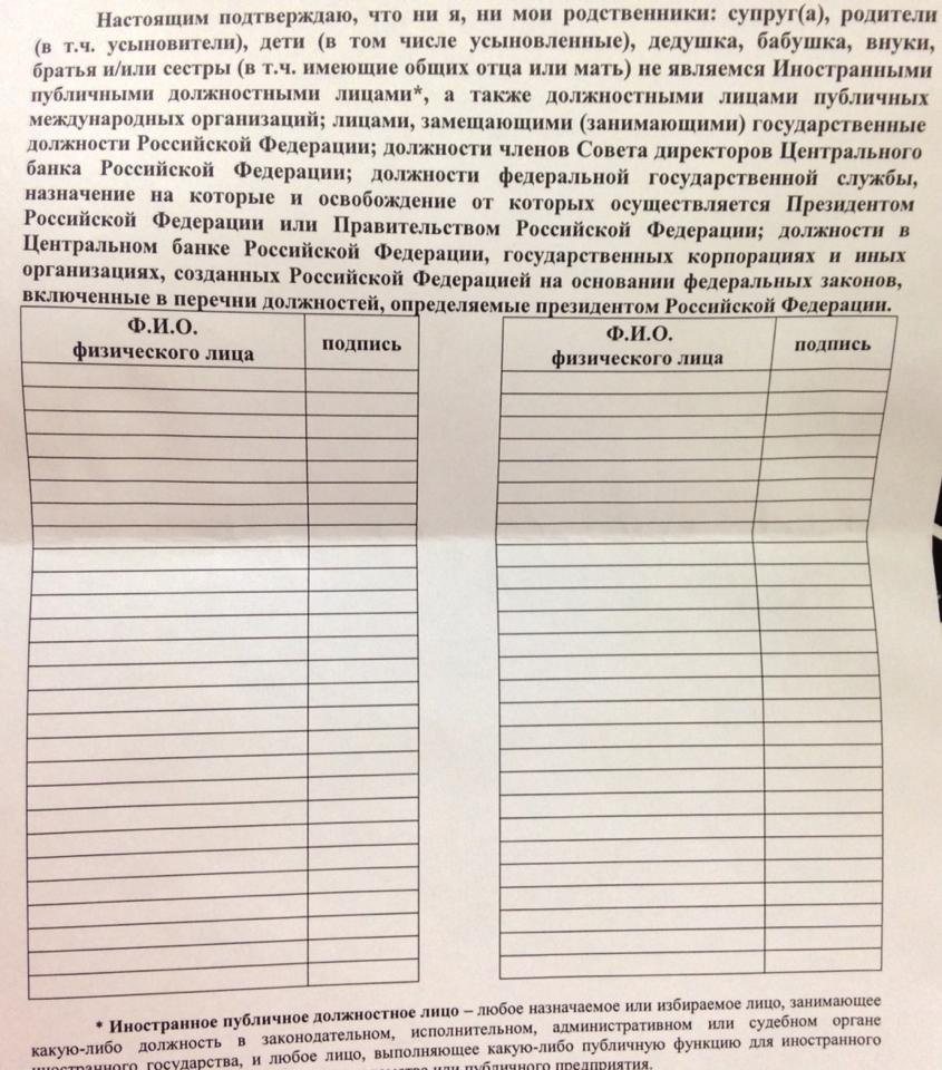 Форма с пустографкой , конечно, непонятная . Все таки не так уж и часто иностранные публичные должностные лица без охраны в банки забредают