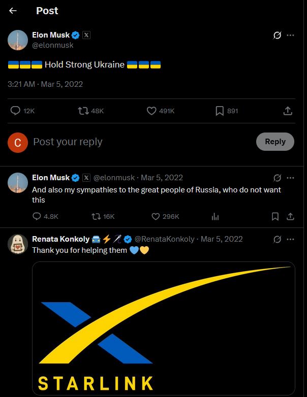 P.S. Никакой рекламы старлинка Маск в Украине не получил.