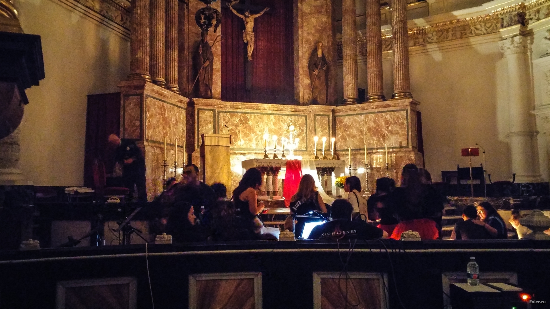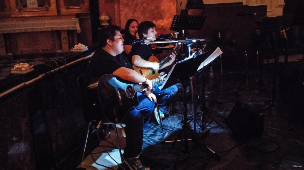 Рядом с алтарем - ансамбль, который исполняет красивые песни. Я не смог определить, церковная это музыка или нет.