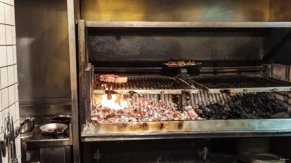 Но я ждал коронного блюда - чулетона (стейка). Вон мой кусочек готовится на решетке.