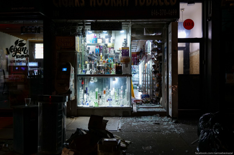 Вернулся домой только в 5 утра. Всю ночь наблюдал, как люди грабят город и как нью-йоркская полиция с этим ничего не делает. Началось все с очередных протестных манифестаций в Бруклине и Манхэттене, а вылилось в массовые грабежи и вандализм. Модного района Сохо с нами больше нет. Он был разграблен полностью и там происходил такой беспредел, что сам факт нахождения на улице с камерой становился опасным для здоровья.