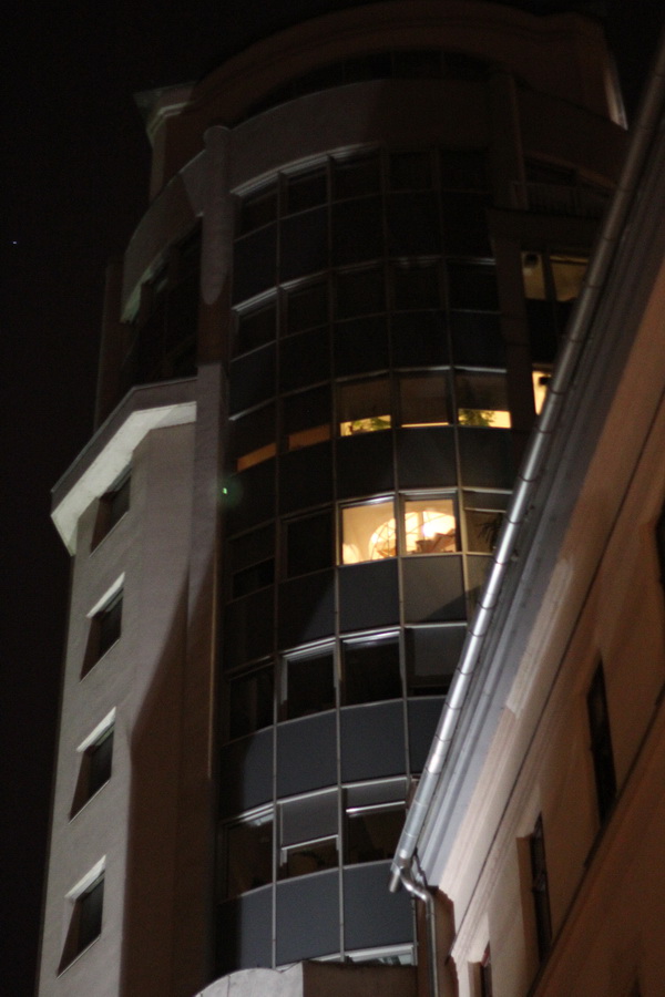 Вот это вид с верхнего этажа нашего отеля: прямо под ним расположен небольшой скверик, в котором ночью иногда собираются деклассированные или классифицированные элементы, которые орут песни. В отеле они всех достали, но с ними борются: висит видеокамера с микрофоном, информация передается в полицию. Когда уровень шума превышает допустимый для деклассированных элементов уровень, приезжает полис и всех винтит.