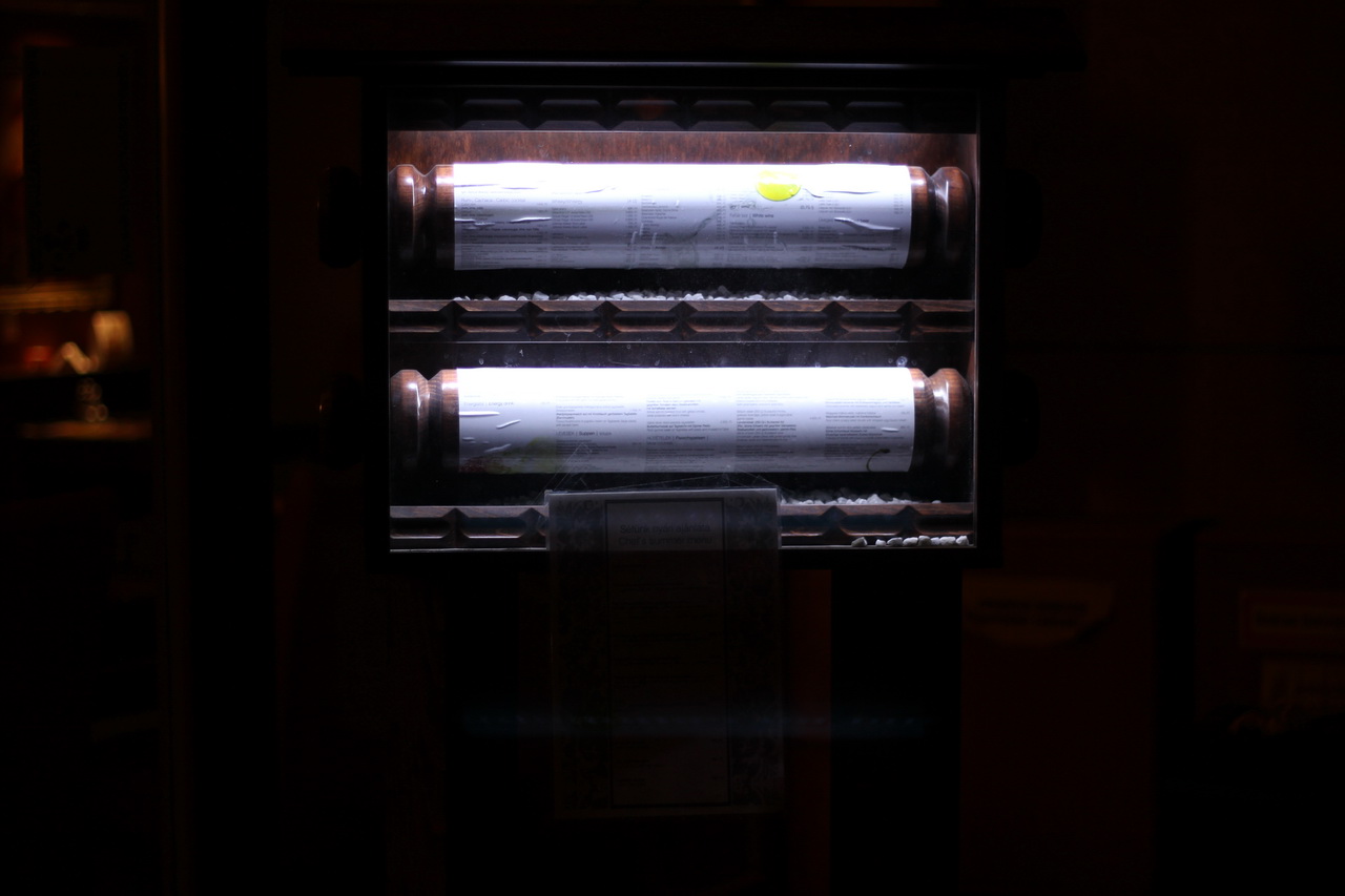 У одного из ресторанов при входе - очень оригинальное меню. Прям свитки Торы, подумал я, так как буквально за десять минут до этого осматривал синагогу.