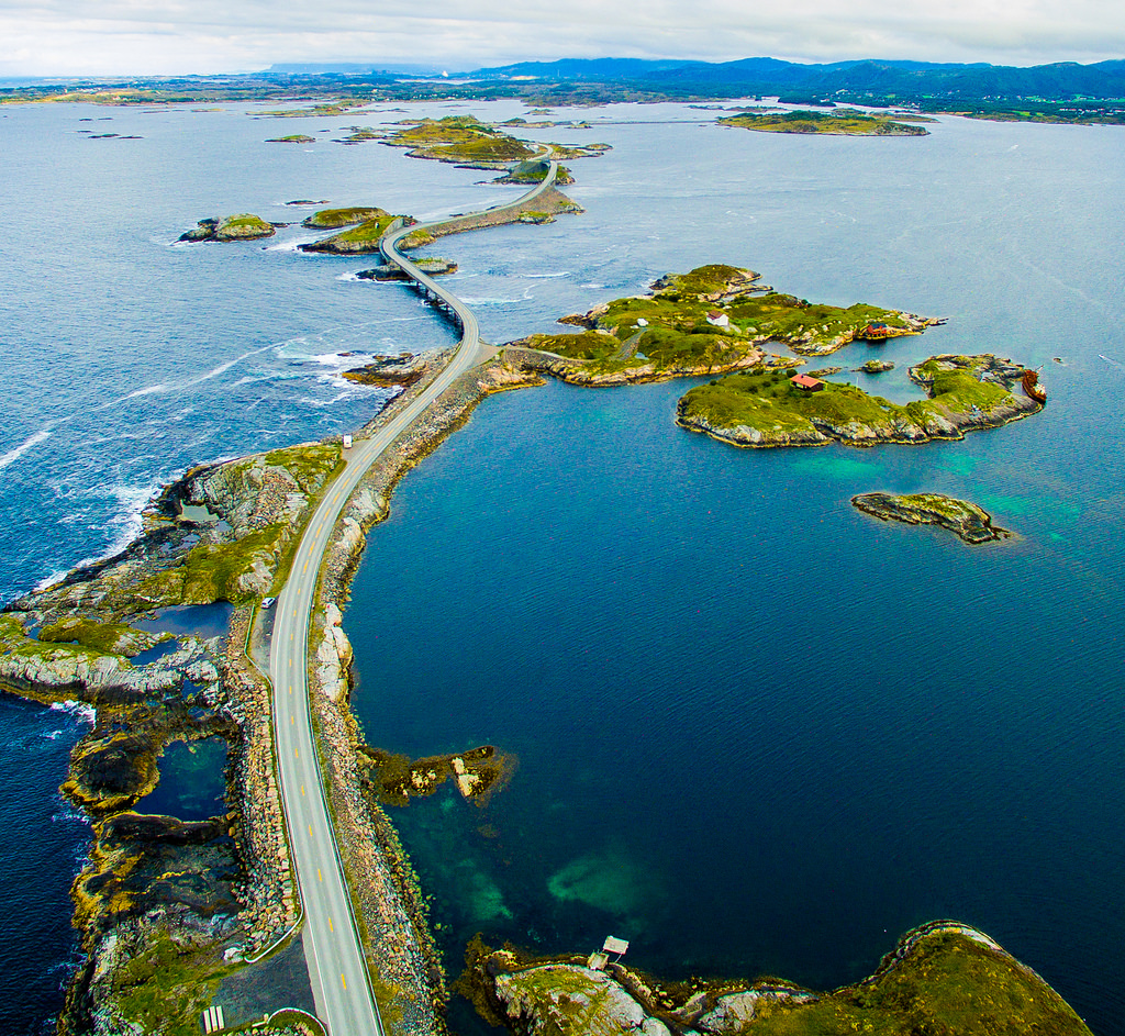 На протяжении 8,27 км шоссе проходит по семи мостам общей длиной 891 метр. Самый высокий мост Storseisundet поднят над водой на высоту в 23 метра специально ради возможности прохождения под ним судов. Под определенным углом зрения этот мост, прозванный в народе «пьяным», напоминает американскую горку, обрывающуюся прямо в небо.