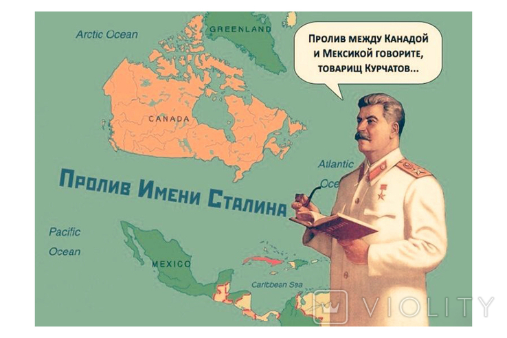 Давняя мечта совейских россиян типа вассермана: пролив им.Сталина между Канадой и Мексикой