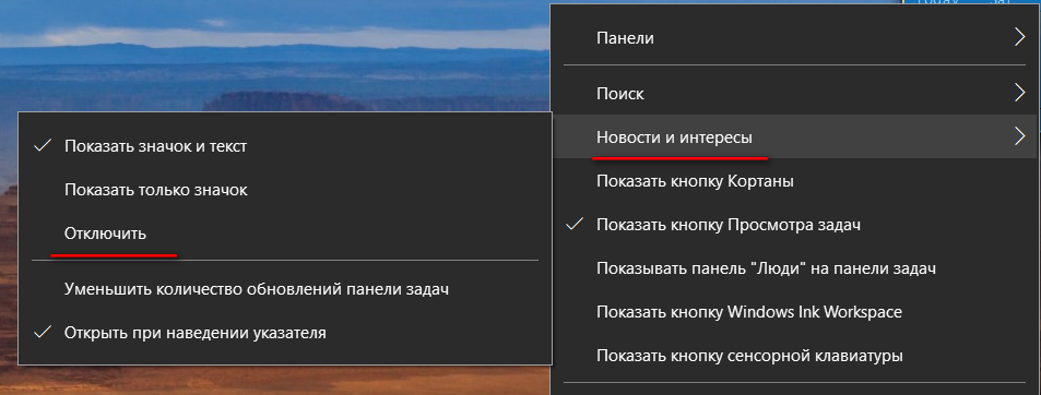 В Windows 10 после недавнего обновления появилась дополнительная информационная панель на панели задач - на ней показывается текущий прогноз погоды.
