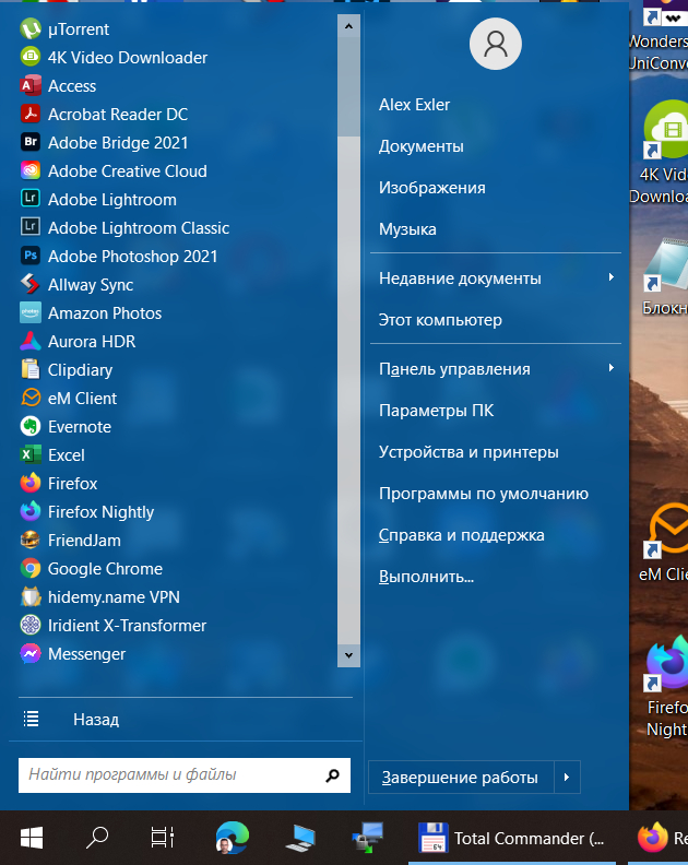 Теперь на рабочем столе вообще можно ярлыков не оставлять. Все нужные ярлыки доступны мгновенно по кнопке Вин.