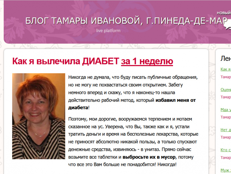 Счастлив сообщить, что Тамара Петровна из Калейи, которая вылечила гепатоз грошовым китайским браслетом из шунгита, превратилась в Тамару Иванову из Пинеды-де-Мар (соседки, я как раз живу на границе Калейи и Пинеды), и уже успешно вылечила диабет за неделю всем тем же китайским браслетом из шунгита.