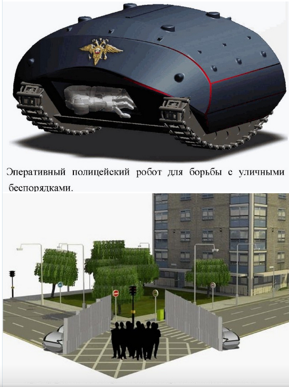 МОСКВА, 19 ноя – РИА Новости. Ученые Кабардино-Балкарского научного центра РАН предложили проект гусеничного робота-"черепахи" для Росгвардии, который сможет подавлять уличные беспорядки и будет вооружен электрошокером, сеткометами и быстротвердеющей пеной, следует из документа, размещенного на сайте Роспатента. (Отсюда.)