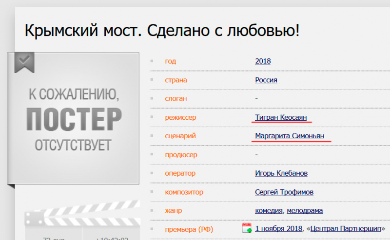 Сорри, но "Крымский мост. Сделано с любовью!" - это не название фильма, это диагноз какой-то