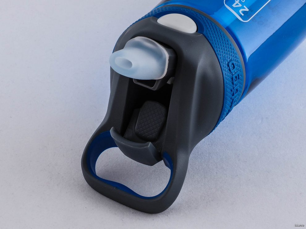Плотно завинчивающаяся крышка снабжена специальным механизмом. При нажатии на кнопку жидкость выливается. Отпускаете кнопку - крышка воду не пропускает ни капли. Проверил - да, все четко. При нажатии на кнопку вода выливается. Кнопку отпустили, бутылку потрясли, чтобы стекли остающиеся капли - после этого можно трясти бутылку изо всех сил: ничего не проливается.
