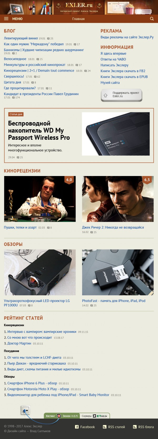 Если не каждый день, я бы кинорецензии поднял над статьёй дня.