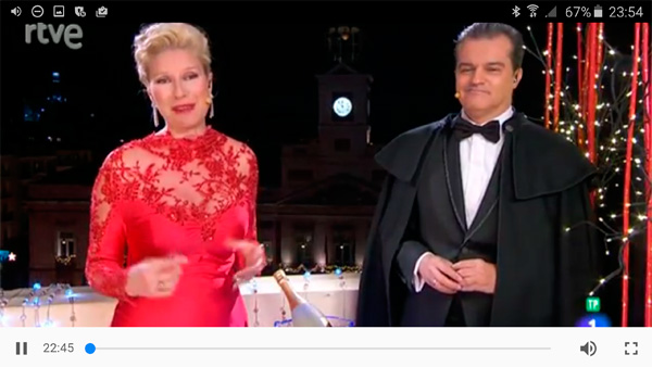 В Мадриде перед полуночью на центральной площади города собралось порядка 25 тысяч человек. Двое ведущих на балконе вежливо болтали в ожидании наступления Нового года.