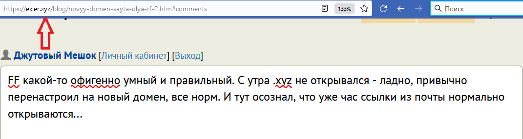 А как народ узнает новый домен? Раз и перестал открываться exler.xyz. Расчехляем VPN, заходим, и узнаем новый домен. Редактируем ссылку. Зачехляем VPN.