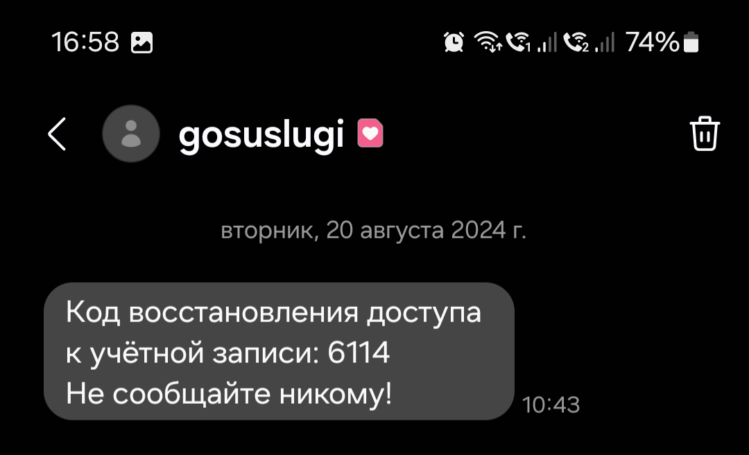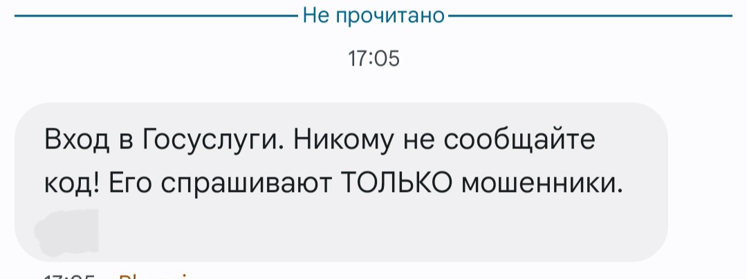 Уже на фразе "скажите код" моя умная мама поняла, что смердит наебаловом. Звонок она прервала и скинула мне скриншот поступившей СМС, а там, ребята, не код от Госуслуг, нет. Там код подтверждения регистрации на сайте микрозаймов.