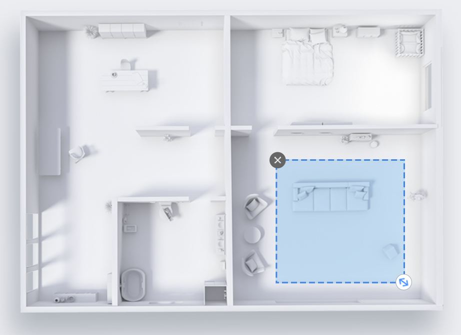 В приложении можно настроить виртуальные стены, чтобы пылесос автоматически избегал зон, которые не нужно убирать. Также можно настроить зону, которую вы хотите убрать.