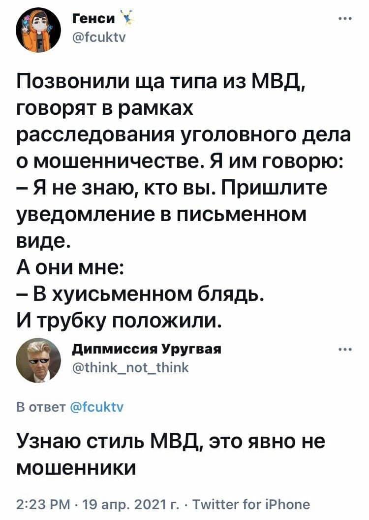 Так что будьте осторожны сами, предупредите своих близких и родственников, и не теряйте контроля, если в трубке вам сообщат, что звонят вот прям аж из Главного Управления МВД.