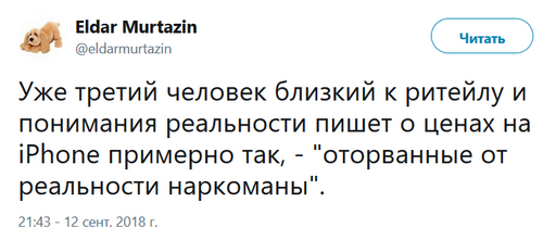 Оторванные от реальности наркоманы, кстати, отчитались, что в мире продан миллиард айфонов-айпэдов. Так что еще вопрос, кто там оторванный от реальности наркоман (я, собственно, про людей, близких к ритейлу и понимания реальности). А что цены на айфоны для нынешней России с ее убитой экономикой и обвалившимся в полную корягу рублем выглядят далекими от реальности - ну так Apple это наверняка должно очень сильно волновать, кто б сомневался.