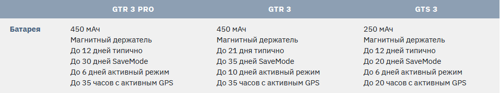 - Возможность хранить до 3 ГБ музыки на часах (относится к GTR 3 Pro)