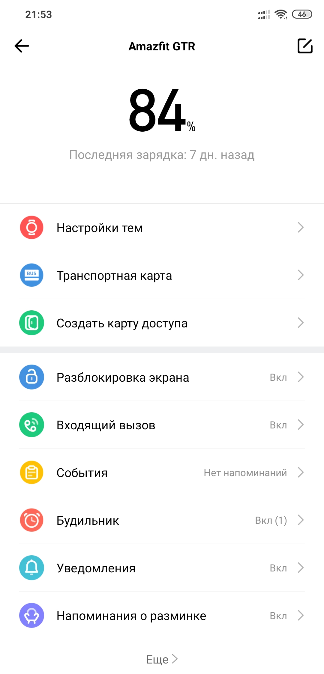 Купил часы две недели назад. Рано неделю назад зарядил до 100%. Включен мониторинг пульса раз в 10 минут, контроль сна. 5 раз в неделю включаю режим велотренажёра, два раза режим ходьбы. Время отключения экрана поставил 10 секунд (по умолчанию было, кажется, 5). Сейчас уровень заряда 84%, т.е., по ощущениям, продержатся они дней 40.