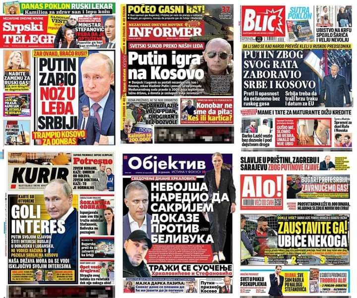✔️«Голый интерес: Путин защищает интересы России без учёта позиции Сербии по Косово».Эти газеты близки к правящей Сербской прогрессивной партии и имеют наибольший тираж в Сербии.