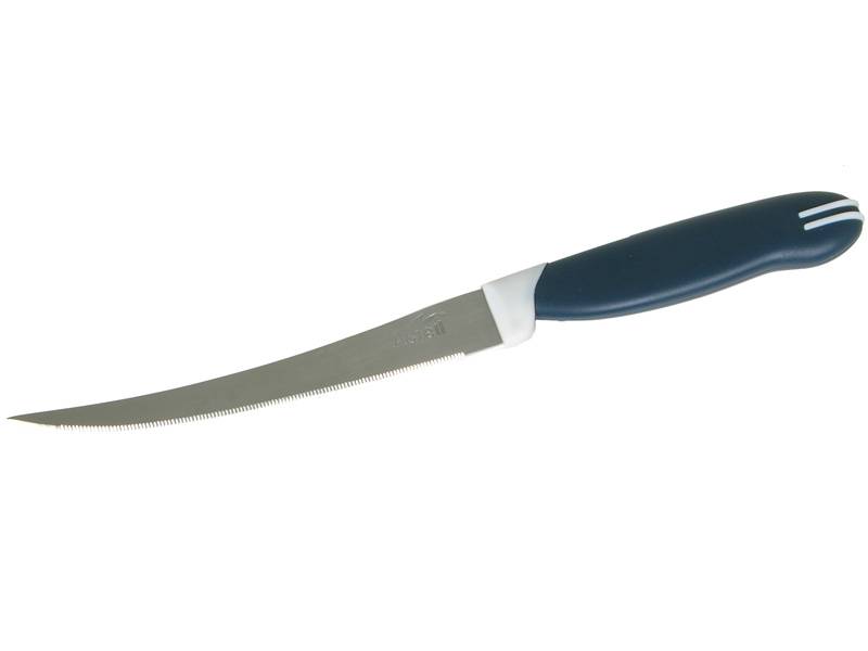 В общаге такой валяется. На упаковке (при покупке он был в блистере) было написано: "нож для томатов". Резать им что либо это мука и издевательство над продуктами, как верно заметил Santa.
