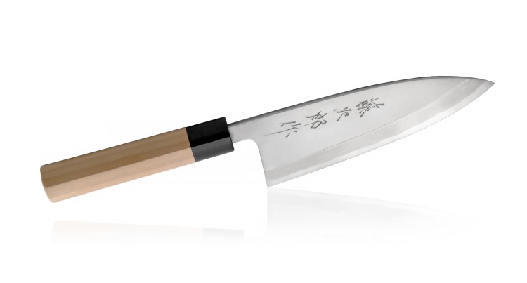 Настоящая деба это нож для разделки крупной рыбы (тунец, лосось), это большой толстенный и тяжелый нож. Моя деба длиной 180мм и толщиной в обухе 8 или 9мм. Весит не знаю сколько, но больше полукилограмма точно. Разрезает крупного лосося поперек практически одним движением. Толстый обух позволяет сильно давить ладонью сверху, в итоге позвоночник перерезается как соломинка. А этот фискарс 54 грамма весит. Может он в хозяйстве и пригодится, но это ж никак не деба. Это как назвать поллитровую металлическую чашку кастрюлей.