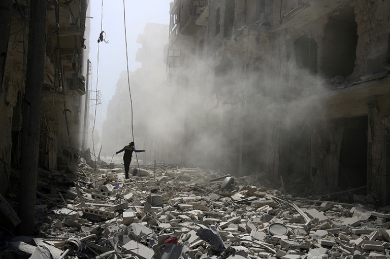 Сирийские повстанцы входят в Алеппо. Район, который они заняли, называется «Новый Район». В 2016 году здесь шли тяжелые бои между оппозицией и армией Асада, которая действовала под прикрытием российской авиации.