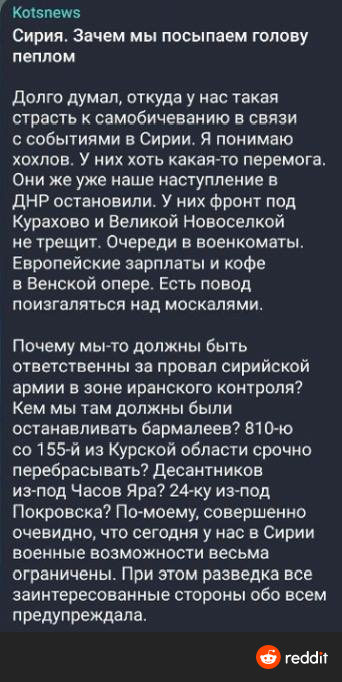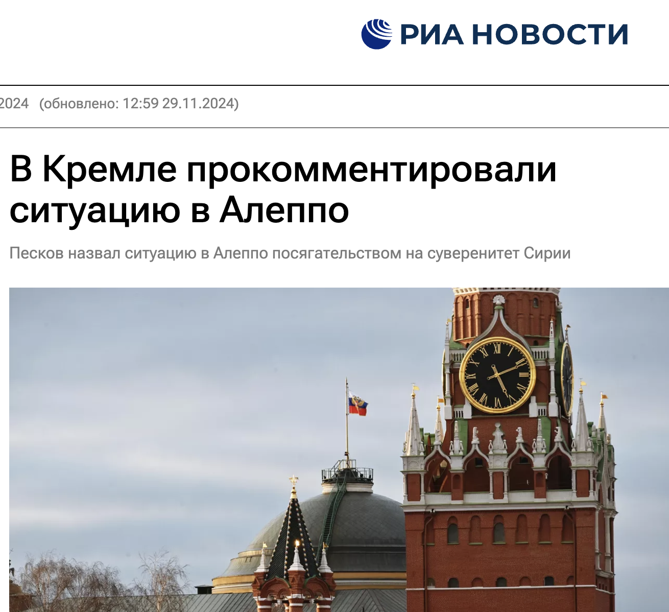 "Bчера диктатор Асад прилетел в Москву с мольбой о спасении — он держался на помощи Путина, Хезболлы и Ирана. Двум последним сейчас совсем не до Асада (спасибо Израилю). Повстанцы в Сирии вот-вот возьмут Алеппо — важнейший город, армия Асада сыпется и бежит, Вова, спасай.