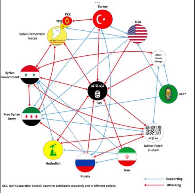 Сирия - яркий образец поговорки про сорта го%^%^а, в которых сложно разобраться. Вариации ИГИЛ против Путина ближневосточного образца. Других политических сил там практически нет. Кстати и "мирного населения" практически нет, кто не доехал до Европы, тот в Турции.