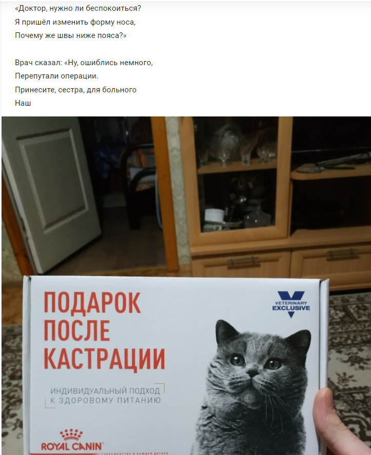 Снова: "Мяу-Мяу". Хирург, отрезая что-то у пациента и