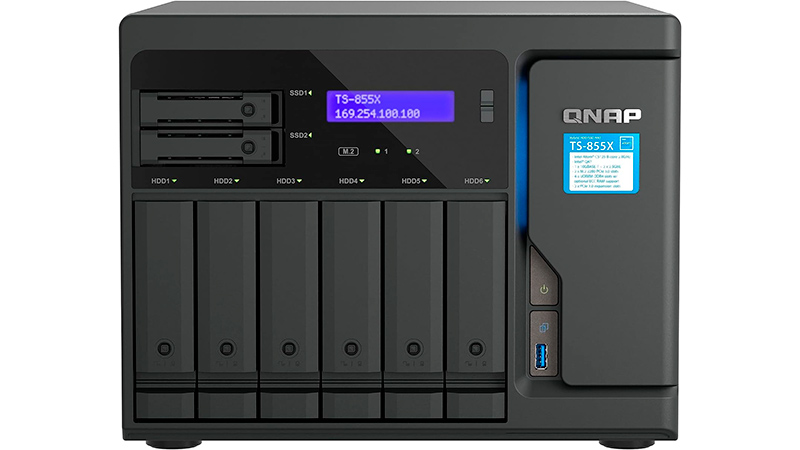 NAS с 10-гигабитным портом. Мне в комментах дали ссылку для Штатов - лучшие NAS с портом 10 GbE. Из них я у нас нашел 8-дисковый Synology DS1823xs+ за €2047. И аналогичный Qnap TS-855X-8G за €1776.